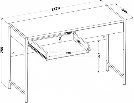 Материал опоры: металл. Материал столешницы: ЛДСП толщиной 22 мм, кромка ПВХ 2 мм. Материал каркаса: ЛДСП толщиной 16 мм, кромка ПВХ 0,4 мм. Тип направляющих: шариковые полного выдвижения.