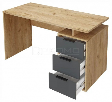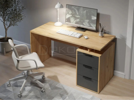 Стол письменный С-407 позволит создать комфортное и стильное рабочее пространство в офисе или домашнем кабинете. Столешница изготовлена из ЛДСП 25 мм, фасады МДФ 16 мм. Дно ящика двп 3 мм. Стол может быть собран в зеркальном варианте «правым» или «левым». Фурнитура: телескопические направляющие полного выдвижения без доводчиков, ручки металл.