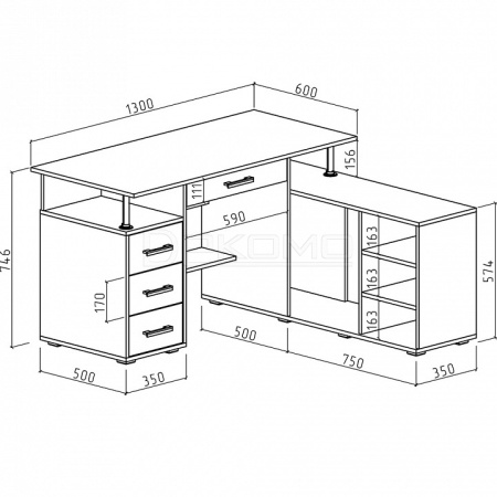 - тумба: 2 полки,