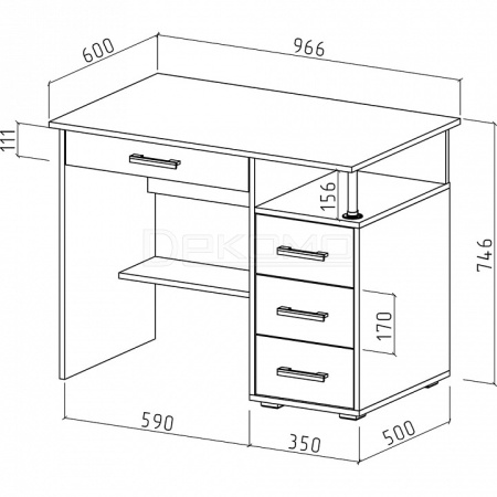 - тумбочка: 3 ящика,