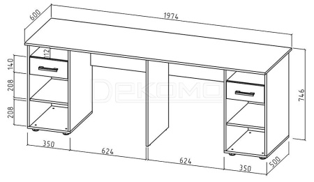 - 2 дверцы, 2 полки, 2 ящика