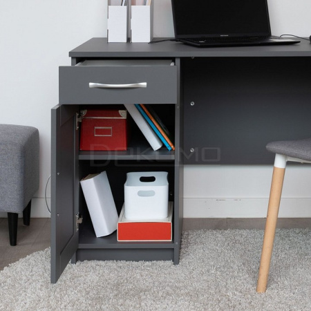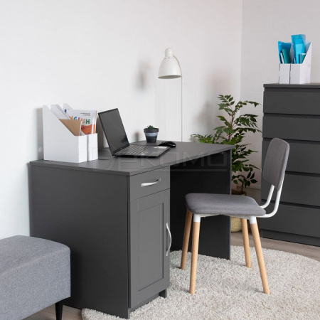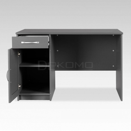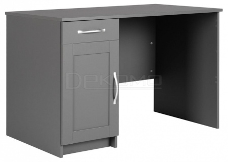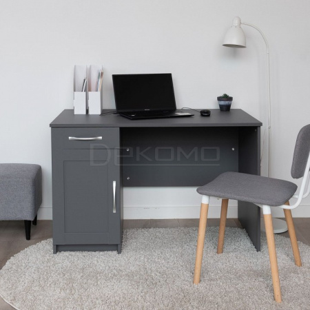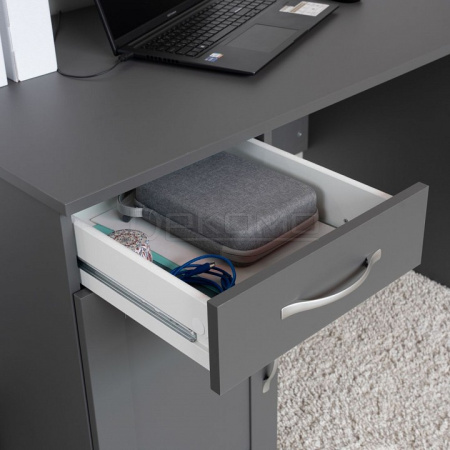 Стол письменный КАСТОР с тумбой и наружным выдвижным ящиком, 1156х650х750, цвет Серый. Изготовлен из кашированного ДСП толщиной 16 мм. Тумбу с ящиком можно разместить справа или слева под столешницей. Гарантийный срок для жилых помещений 24 месяца, для общественных помещений - 18 месяцев.