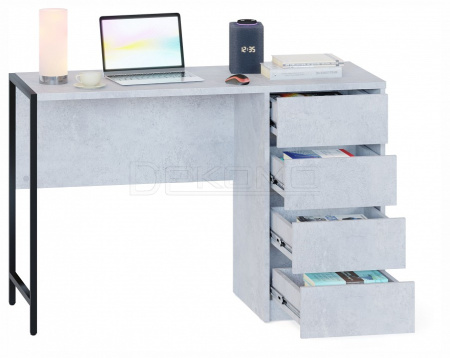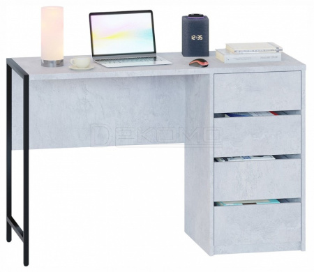 Стильный письменный стол СПМ-405 идеально подходит для организации полноценного рабочего места, эффективно задействуя пространство в доме или офисе. За счет интересного решения с металлическими опорами на регулируемых подпятниках и столешницы толщиной 22 мм с противоударной кромкой создается современная обстановка в стиле лофт. Модель оснащена вместительной тумбой с четырьмя ящиками, а также столешницей шириной 1130 мм и глубиной 449 мм для удобного хранения всей необходимой канцелярии и документов. Ящики с надежными шариковыми направляющими обеспечивают плавное бесшумное открывание, а вместо привычных ручек сделаны стильные вырезы между фасадами.