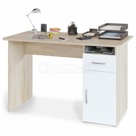 Классический письменный стол шириной 1200 мм. со встроенной тумбочкой. Просторная столешница позволит удобно расположиться за столом и работать с большим объемом документов. Тумба оснащена открытой нишей, выдвижным ящиком и закрытой полкой. Внутренний размер ящика составляет 382х223 мм., что позволит разместить в нем документы формата А4, канцелярские принадлежности и необходимые мелочи. Стол универсален при сборке (вы можете расположить тумбу как справа, так и слева).