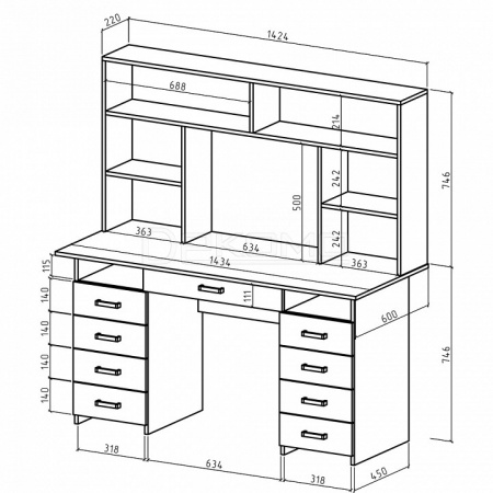 2 тумбочки: 8 ящиков - Количество секций для хранения: