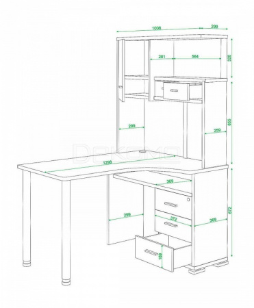 тумбочка:- 3 ящика;