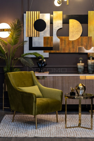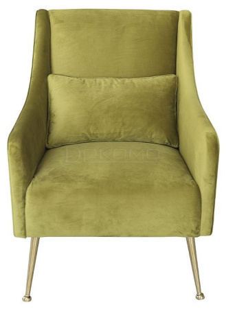 Элегантное кресло с подушкой выполнено из велюра. В комплект входит удобная подушка, которая способствует максимальному расслаблению мышц спины. Цвет кресла оливковый. Имеет деревянный каркас и крепкие металлические ножки, гарантирующие устойчивость конструкции. Глубокое кресло способствует хорошему отдыху, оригинальная форма модели обладает высокой прочностью. Главное предназначение — это создание комфортной зоны отдыха. Солидный внешний вид и глубокое сидение прекрасно справляются со своей задачей. Гармонично впишется в любой интерьер начиная от лаконичных и заканчивая экстравагантными дизайнерскими воплощениями. Высокое качество и приемлемая цена делают его наиболее востребованным.