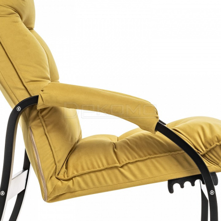 У основания кресло раскладное оснащено механизмом гребенка, за счет чего одним движением спинка переключается в 4 положения. Этим модель напоминает шезлонг, но Левада Leset -полноценное интерьерное кресло для отдыха: современный дизайн, изящный деревянный каркас под итальянским лаком, велюровый чехол, наполнитель из эластичного пенополиуретана. Накладки на подлокотниках снимаются для чистки, приспинная подушка декорирована пуговицами.