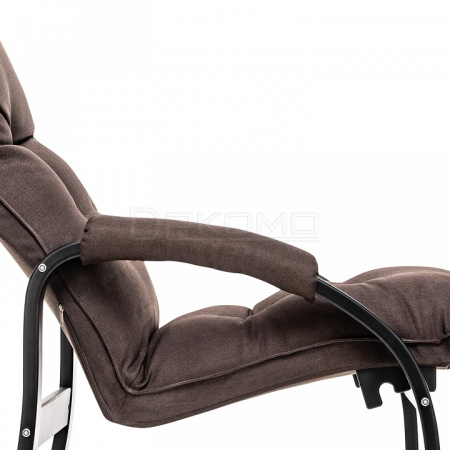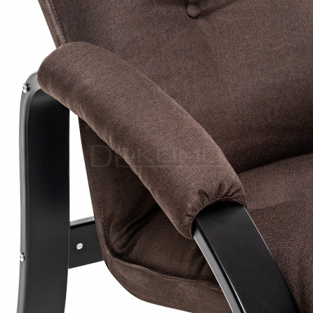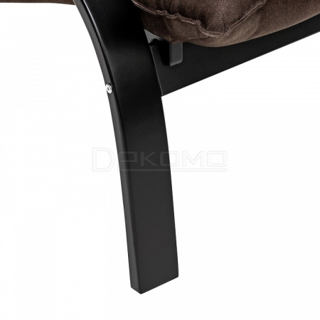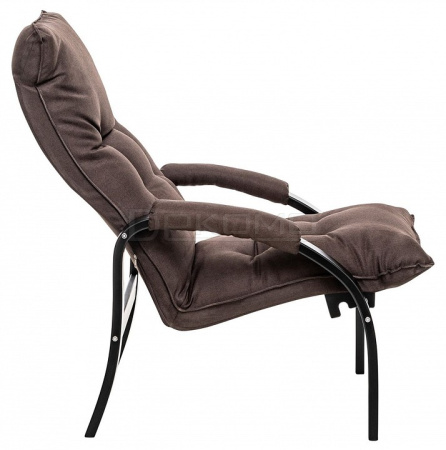 Кресло оснащено механизмом гребенка, за счет чего одним движением спинка переключается в 2 положения: сидя или полулежа. Современный дизайн, изящный деревянный каркас под итальянским лаком, велюровый чехол, наполнитель из эластичного пенополиуретана. Накладки на подлокотниках снимаются для чистки, приспинная подушка декорирована пуговицами.