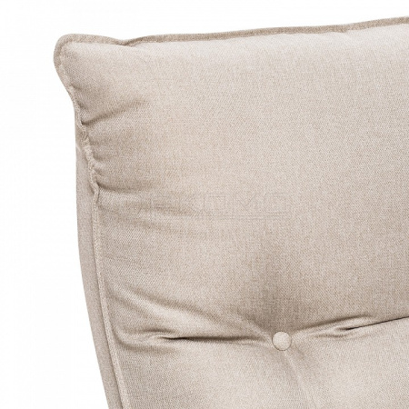 Эргономичный каркас выглядит изящно, но выдержит до 120 кг, матрас декорирован обтянутыми материалом пуговицами и боковой окантовкой, накладки на подлокотниках съемные.