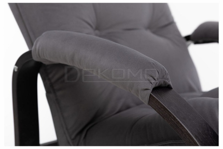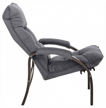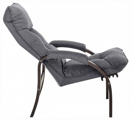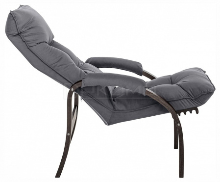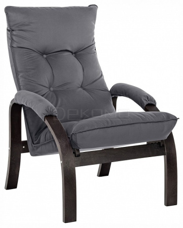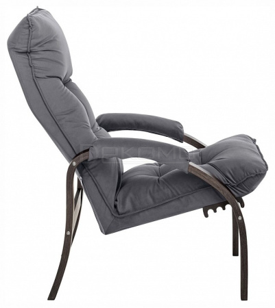 Мягкое кресло для отдыха дома и на даче Левада сделает комфортным интерьер комнаты модерн или хай-тек. Стильные кресла трансформеры из гнутоклееной коллекции мягкой мебели имеют характерный силуэт, функциональны и компактны, поэтому популярны. Кресло-стул с подлокотниками и уютным сиденьем уместно в спальне, гостиной, прихожей, на балконе, в закрытой дачной беседке. У основания кресло раскладное оснащено механизмом гребенка, за счет чего одним движением спинка переключается в 4 положения. Этим модель напоминает шезлонг, но Левада -полноценное интерьерное кресло для отдыха: современный дизайн, изящный деревянный каркас под итальянским лаком, велюровый чехол, наполнитель из эластичного пенополиуретана. Накладки на подлокотниках снимаются для чистки, приспинная подушка декорирована пуговицами. Эргономичное каркасное кресло раскладушка выдержит до 120 кг.