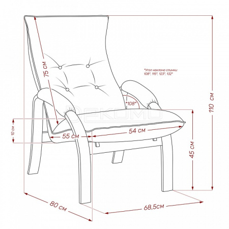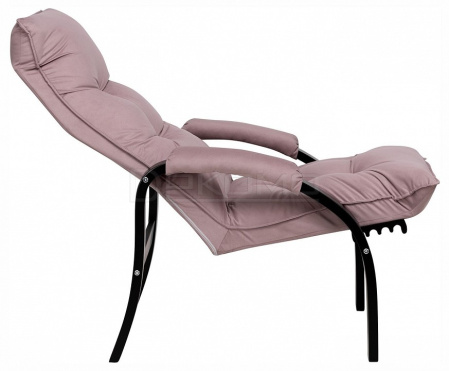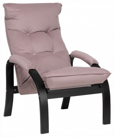 Мягкое кресло для отдыха дома и на даче Левада сделает комфортным интерьер комнаты модерн или хай-тек. Стильные кресла трансформеры из гнутоклееной коллекции мягкой мебели имеют характерный силуэт, функциональны и компактны, поэтому популярны. Кресло-стул с подлокотниками и уютным сиденьем уместно в спальне, гостиной, прихожей, на балконе, в закрытой дачной беседке. У основания кресло раскладное оснащено механизмом гребенка, за счет чего одним движением спинка переключается в 4 положения. Этим модель напоминает шезлонг, но Левада -полноценное интерьерное кресло для отдыха: современный дизайн, изящный деревянный каркас под итальянским лаком, велюровый чехол, наполнитель из эластичного пенополиуретана. Накладки на подлокотниках снимаются для чистки, приспинная подушка декорирована пуговицами. Эргономичное каркасное кресло раскладушка выдержит до 120 кг.