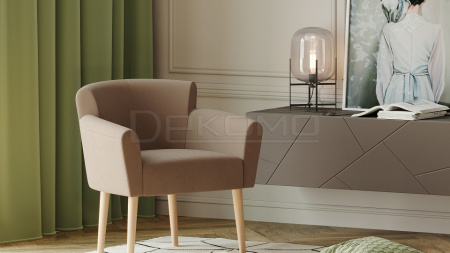 Лаконичный дизайн кресла Вирджиния дополнит интерьер любой комнаты. Модель без лишних деталей, на высоких ножках.