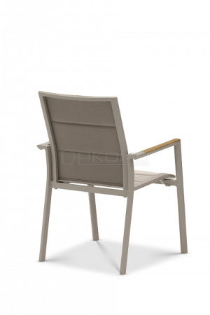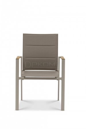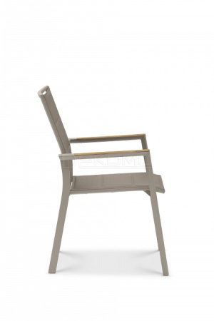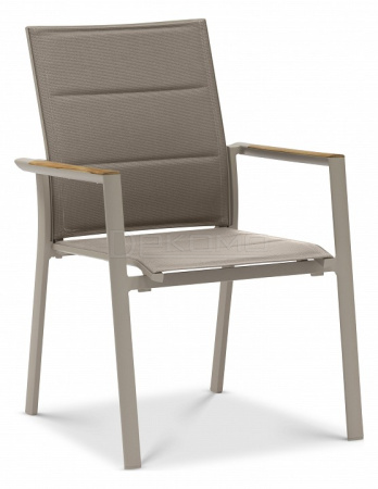 Современная коллекция, состоящая из штабелируемых стульев и лежаков. Каждая деталь имеет современную эстетику, стильные детали на ножках и рамах, а также превосходный комфорт для сидения. Тиковые подлокотники. Плотная обивка.