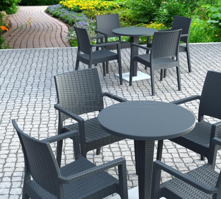 Пластиковое плетеное кресло Ibiza изготовлено из прочного погодостойкого пластика, армированного стекловолокном с имитацией плетения натурального ротанга, станет отличным выбором для обстановки фуд-кортов, кафе, ресторанов и баров. Благодаря использованию высококачественных материалов, они долгое время не теряют своего привлекательного внешнего вида, даже несмотря на активную эксплуатацию. Благодаря отсутствию металлического каркаса и устойчивости к ультрафиолетовому воздействию, плетеные кресла из пластика Ibiza можно использовать в том числе и на открытых площадках.