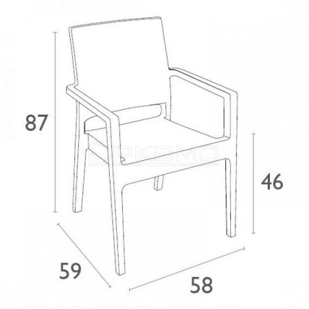 высота сиденья - 460 мм- изготовлено из прочного погодостойкого пластика с имитацией плетения натурального ротанга; - не имеет металлического каркаса - не ржавеет, не поддается коррозии; - устойчиво к ультрафиолету и атмосферным осадкам, выдерживает минусовую температуру до 20 градусов; - армировано стекловолокном; - штабелируемое - занимает минимум места при хранении; - подходит для использования на открытом воздухе и в помещении.