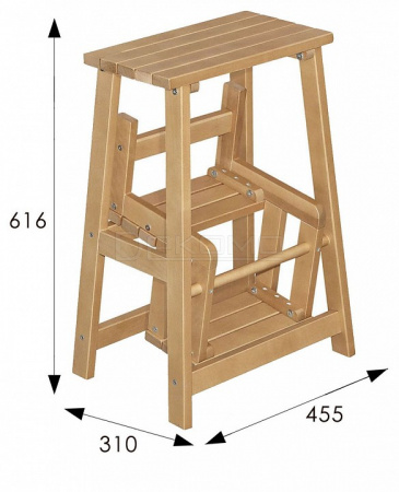 Каркас из натурального дерева делает стремянку легкой и прочной. Отличное приобретение, может служить подарком хозяйке.
