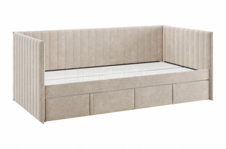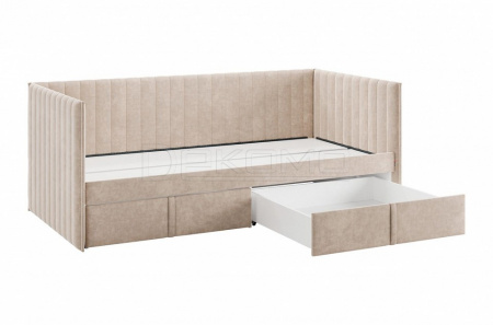Кровать с ящиками Твикс (Софа) 90х200 см – это идеальное решение для компактного и функционального обустройства спальни или детской комнаты. Изготовленная из высококачественных материалов, таких как ДСП толщиной 16 мм, мягкого наполнителя и велюра, она сочетает в себе современный дизайн и практичность.