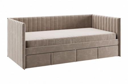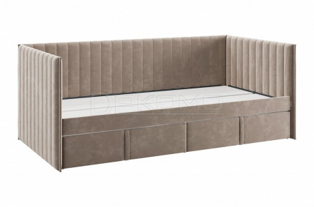 Кровать с ящиками Твикс (Софа) 90х200 см – это идеальное решение для компактного и функционального обустройства спальни или детской комнаты. Изготовленная из высококачественных материалов, таких как ДСП толщиной 16 мм, мягкого наполнителя и велюра, она сочетает в себе современный дизайн и практичность.
