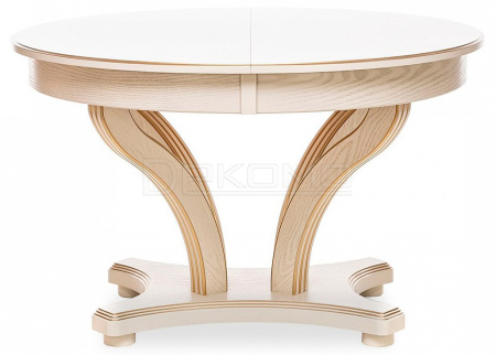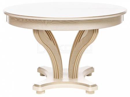 Красивый, компактный и вместительный обеденный стол Ромео – элегантная новинка коллекции обеденных групп Leset. Фигурное основание стола для кухни и опоры из массива бука украшены античной резьбой, круглая столешница столика из шпонированного ЛДСП подчеркивает стильное решение. Стол раздвижной оборудован синхронным механизмом "бабочка", что позволяет разместить 6-8 персон, а в собранном виде экономить пространство. Стол кухонный раздвижной не только станет центральным акцентом кухни или столовой. Изящный и эргономичный стол обеденный круглый идеально впишется в интерьер кафе, ресторана. Габариты стола раскладного 120x120x76 см, в разложенном виде ширина стола 170см. Стол кухонный круглый выдержит 50 кг распределенной нагрузки. Выбирайте столы и стулья для кухни российского производителя! Безупречное сочетание – круглый стол со стульями Юта Leset.