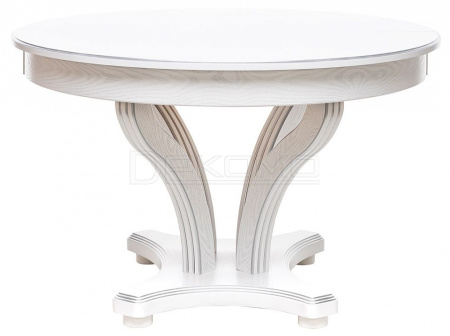 Красивый, компактный и вместительный обеденный стол Ромео – элегантная новинка коллекции обеденных групп Leset. Фигурное основание стола для кухни и опоры из массива бука украшены античной резьбой, круглая столешница столика из шпонированного ЛДСП подчеркивает стильное решение. Стол раздвижной оборудован синхронным механизмом "бабочка", что позволяет разместить 6-8 персон, а в собранном виде экономить пространство. Стол кухонный раздвижной не только станет центральным акцентом кухни или столовой. Изящный и эргономичный стол обеденный круглый идеально впишется в интерьер кафе, ресторана. Габариты стола раскладного 120x120x76 см, в разложенном виде ширина стола 170см. Стол кухонный круглый выдержит 50 кг распределенной нагрузки. Выбирайте столы и стулья для кухни российского производителя! Безупречное сочетание – круглый стол со стульями Юта Leset.