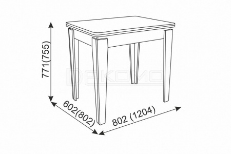 - Д:802 x Ш:602 x В:771, 755