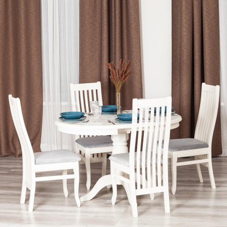 Элегантный обеденный стол STEFANO с круглой столешницей создаст атмосферу комфорта, спокойствия и уюта в вашем доме. Данная модель станет замечательным интерьерным акцентом в любом обстановке. Устойчивая ножка стола выполнена из массива бука, благодаря чему модель прочна, надежна и основательна. Круглая форма столешницы способствует долгому и комфортному времяпрепровождению. Раздвижной механизм позволяет удобно разместить от четырех до шести человек. Модель не требует специального ухода, устойчива к изменению температуры и влаги. Круглый стол STEFANO ─ роскошный предмет интерьера, который впишется в любой комнате вашего дома и будет радовать своей оригинальностью и элегантностью в течение длительного времени. Стол подходит для кухни, для гостиной, для дачи. Стол очень прост в сборке, инструкция по сборке прилагается.