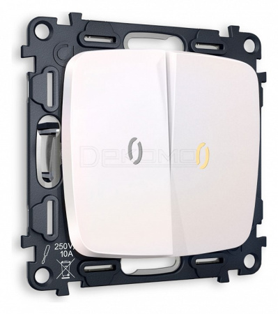 Выключатель двухклавишный с подсветкой без рамки OMEGA MO204010