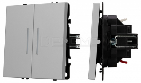 Выключатель проходной двухклавишный с подсветкой без рамки SWT-NOBE 059415