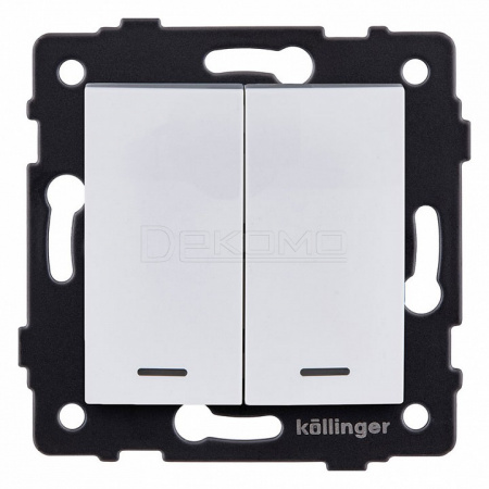 Выключатель проходной двухклавишный с подсветкой без рамки REA-R-010WH