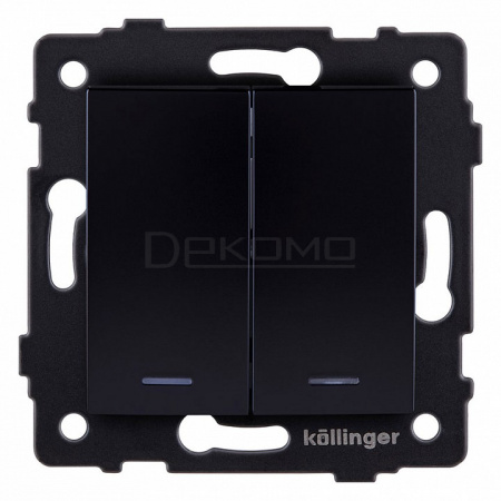 Выключатель двухклавишный с подсветкой без рамки REA-R-014BK