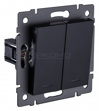 Выключатель двухклавишный с подсветкой без рамки REA-S-008BK