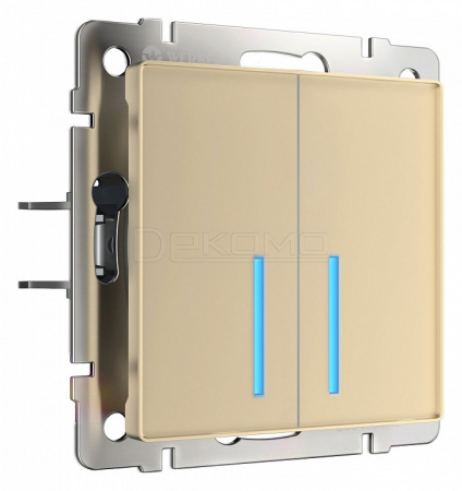 Выключатель проходной двухклавишный без рамки шампань W1122011