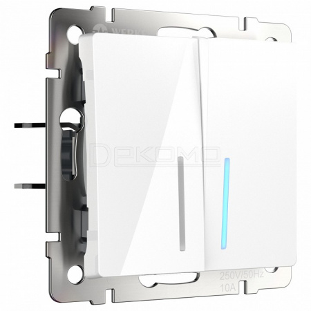 Выключатель проходной двухклавишный с подсветкой без рамки белый W1122101