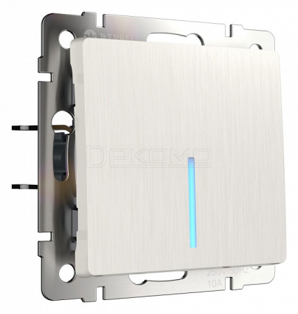 Выключатель проходной одноклавишный с подсветкой без рамки перламутровый рифленый W1112113