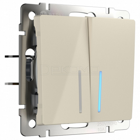 Выключатель проходной двухклавишный с подсветкой без рамки шампань рифленый W1122110