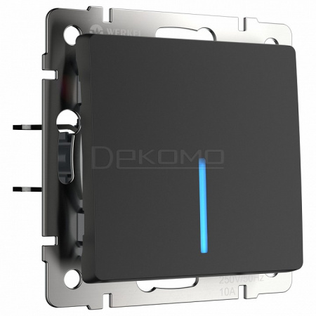 Выключатель одноклавишный с подсветкой без рамки черный матовый W1110108