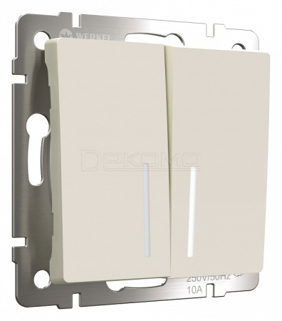 Выключатель двухклавишный с подсветкой без рамки айвори матовый W1120162