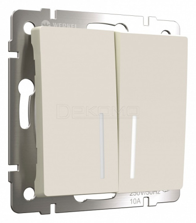 Выключатель проходной двухклавишный с подсветкой без рамки айвори матовый W1122162