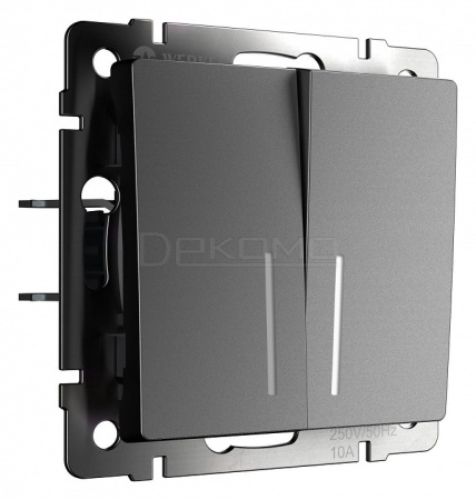 Выключатель двухклавишный с подсветкой без рамки графит матовый W1120164