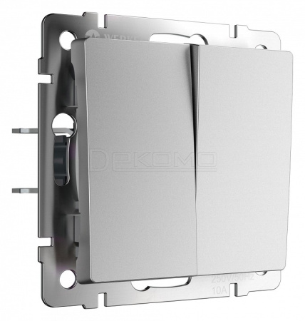 Выключатель проходной двухклавишный без рамки серебряный матовый W1122065