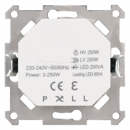 управление яркостью с помощью роторного вращателя,имеет DIP-переключатель для выбора режима работы Leading Edge / Trailing Edge, диммирование по переднему и заднему фронту, не требует подключения N провода, возможна работа с любым источником света, поддерживающим фазное диммирование, есть регулировка ограничения минимального и максимального уровня яркости