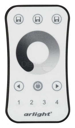 Кнопочный радиопульт с сенсорным кольцом 2.4 ГГц белого цвета для управления одноцветным (DIM) источником света. 4 зоны управления, управление яркостью с помощью сенсорного кольца. Питание 3VDC (CR2032). Габариты 107x58.5x9 мм. Управляет контроллерами и панелями серии SMART (поставляются отдельно). Настенные держатели приобретаются отдельно (см. аксессуары).