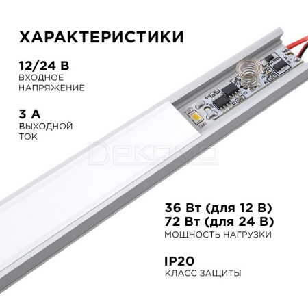 сенсорный выключатель в алюминиевый профиль высотой 6мм, для монохромной лентой, с функцией диммирования