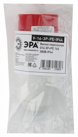 Вилка прямая 3P+PE V-16-3P-PE-IP44