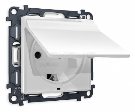 Розетка с заземлением и со шторкой, без рамки с крышкой ALFA MA128010