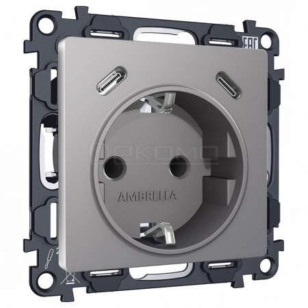 Розетка с заземлением и 2хUSB type C, без рамки ALFA MA510510