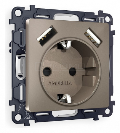 Розетка с заземлением и со шторкой и 2хUSB type A, без рамки ALFA MA639010