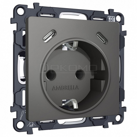 Розетка с заземлением и 2хUSB type C, без рамки ALFA MA660510