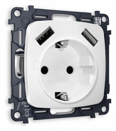 Розетка с заземлением и 2хUSB type A, без рамки OMEGA MO129010